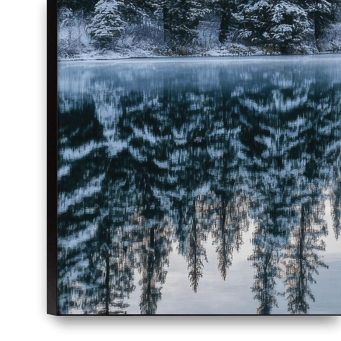 Ein majestätischer Berg thront über einem glitzernden See, umgeben von schneebedeckten Tannen. Die kühle, klare Luft vermittelt eine friedliche Stille, während die Spiegelung im Wasser die winterliche Pracht perfekt einfängt. Sanfte, pastellige Farben des Himmels harmonieren mit der unberührten Natur und verleihen der Szene eine…