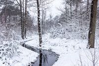 Dies ist natürlich ein echtes Winterfoto. Das Foto strahlt Ruhe aus. Das Wasser ist noch nicht gefroren, so dass es eine schöne dunkle Kurve durch die Landschaft macht.