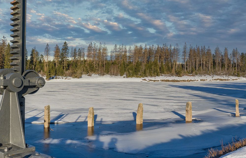 Winterwunderland im Harz: Der Harz ist das nördlichste Mittelgebirge Deutschlands. Sein höchster Berg ist der Brocken mit 1142 Metern, der zum Nationalpark Harz gehört. Dieser Nationalpark umfasst etwa zehn Prozent des Gebirgszuges. Der Harz ist seit jeher ein wichtiges Bergbaugebiet. Die Gebirgsbildung am Ende des Paläozoikums, die Hercynische Orogenese, wurde nach dem Harz benannt. Dieser atemberaubend schöne Blick auf den zugefrorenen See inmitten von viel schöner Natur