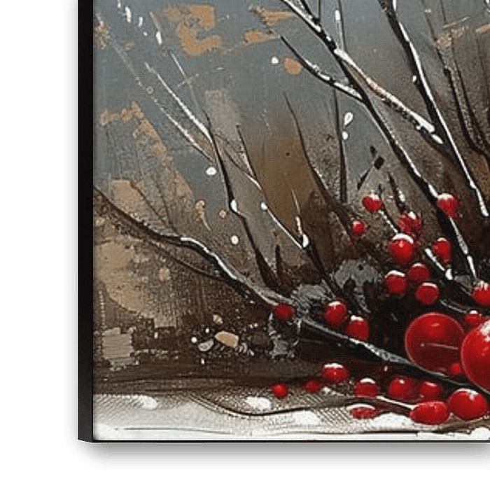 Bestelle dieses moderne Wandbild Winterstillleben Rot von Kunst Laune als Reproduktion auf Leinwand, Alu-Dibond, als Poster, Fototapete oder Acrylglasbild.