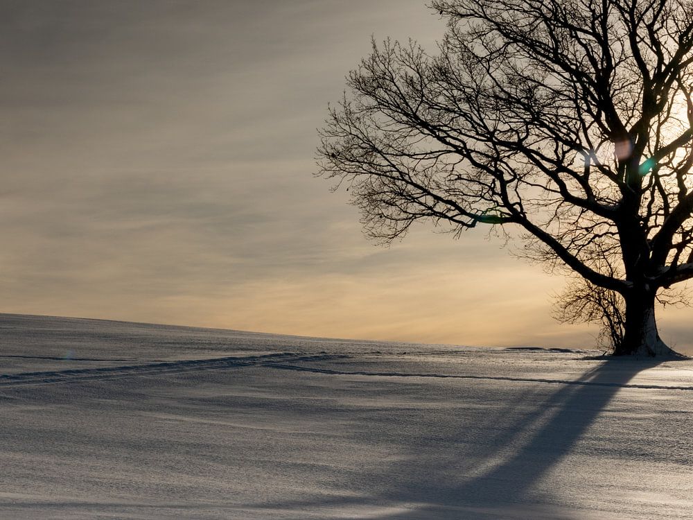 Winterstimmung mit Baum im Gegenlicht