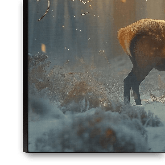 Bestelle dieses Landschafts-Wandbild Winterwald mit Wildtier von fernlichtsicht als Reproduktion auf Leinwand, Alu-Dibond, als Poster, Fototapete oder Acrylglasbild.