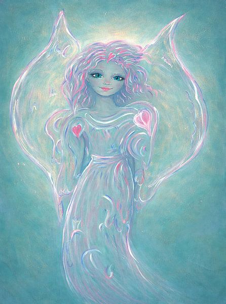 Ein zarter Engel in ruhigen Türkis- und Rosétönen, der Geborgenheit und innere Ruhe ausstrahlt.