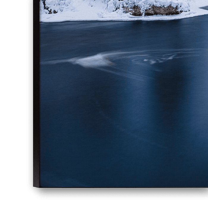 Die Strömung des Flusses brachte die Eisschollen in der Mitte in Rotation. Dank der langen Verschlusszeit der Kamera wurde dieser besondere Effekt auf dem Foto erzeugt.