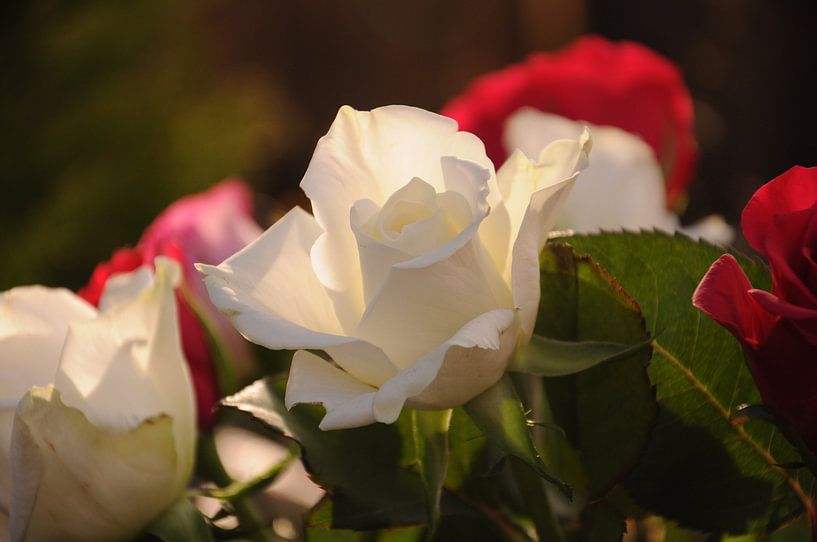 Bestelle das Foto Witte Roos in de winterzon von Sandra Vermeer als Reproduktion auf Leinwand, Alu-Dibond, als Poster, Fototapete oder Acrylglasbild.