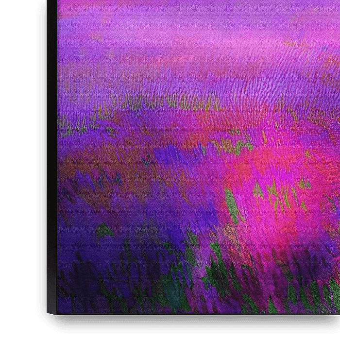 Ihre gewählte Kunst auf Leinwand, gespannt in einem Aluminiumrahmen. Schnell und einfach austauschbar für eine frische Ausstrahlung und ganz nach Ihren Wünschen.