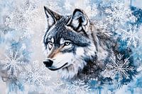 Bestelle dieses Landschafts-Wandbild Wolf umgeben von Schneeflocken von Imperial Art House als Kunstdruck auf Leinwand, Alu-Dibond, als Poster, Fototapete oder Acrylglasbild.