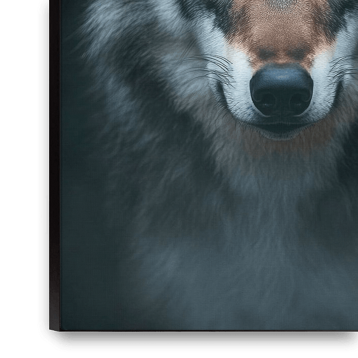 Ein majestätischer Wolf blickt mit durchdringenden, intelligenten Augen in die Tiefe. Seine lebendige Fellfarbe und die imposanten Konturen strahlen Stärke und Wildheit aus. Dieses faszinierende Kunstwerk bringt einen Hauch von Natur und Abenteuer in jedes Wohnzimmer und wird zum fesselnden Blickfang für Tierliebhaber und Abenteurer.