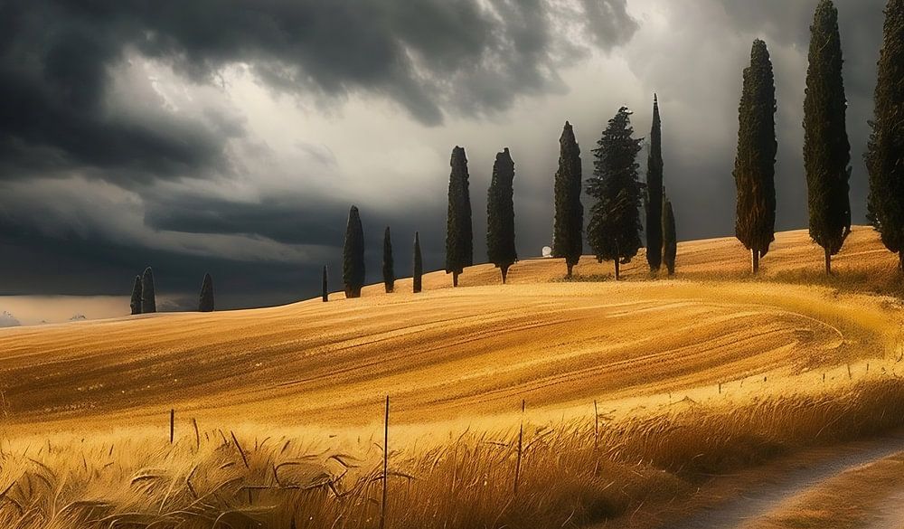 Bestelle dieses Landschafts-Wandbild Wolkenzauber über der Toskana von fernlichtsicht als Reproduktion auf Leinwand, Alu-Dibond, als Poster, Fototapete oder Acrylglasbild.