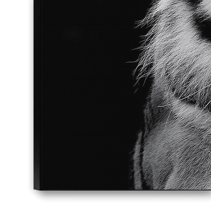 Porträt eines sibirischen Tigerweibchens, das von Farbe in Schwarz-Weiß transformiert wurde. Das Foto wurde im Safaripark de Beekse Bergen aufgenommen.