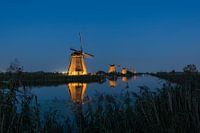 Wunderschön beleuchtete Windmühlen Kinderdijk von Moetwil en van Dijk - Fotografie