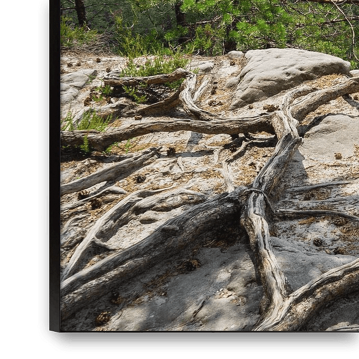 Bestelle das Foto Wurzeln und Ausblick in den Amselgrund bei Rathen von Adriana Müller als Reproduktion auf Leinwand, Alu-Dibond, als Poster, Fototapete oder Acrylglasbild.