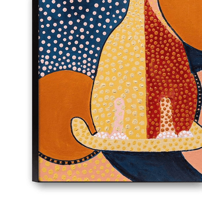 Retro, Eklektizismus, Vintage, Sparsamkeit, Pointillismus, siebziger Jahre und natürlich Katzen haben mich zu diesem Gemälde inspiriert.