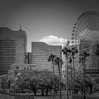 Bestelle das Foto Yokohama Skyline mit Riesenrad | monochrom von Melanie Viola als Reproduktion auf Leinwand, Alu-Dibond, als Poster, Fototapete oder Acrylglasbild.