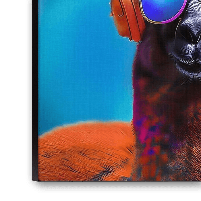 Drei coole Alpakas, in drei verschiedenen Farben, mit Sonnenbrillen auf der Nase und Kopfhörern auf dem Kopf. Ein buntes Ensemble, das gemeinsam Musik hört und das Leben genießt. Das Bild wurde mit ai erstellt.