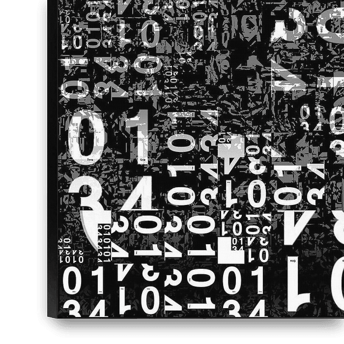 Unterschiedlich große teilweise transparente weiße Ziffern von 0 bis 9 bedecken den schwarzen Hintergrund