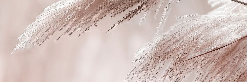 Pampasgras wird vor einem sanften, blassrosa Hintergrund hervorgehoben, der eine ruhige und zarte Ausstrahlung hat. Die Komposition erweckt ein Gefühl von Ruhe und Einfachheit, wobei das Licht durch die federleichten Texturen der Pflanze diffundiert. Genießen Sie einen imposanten, verträumten Landschaftseindruck.