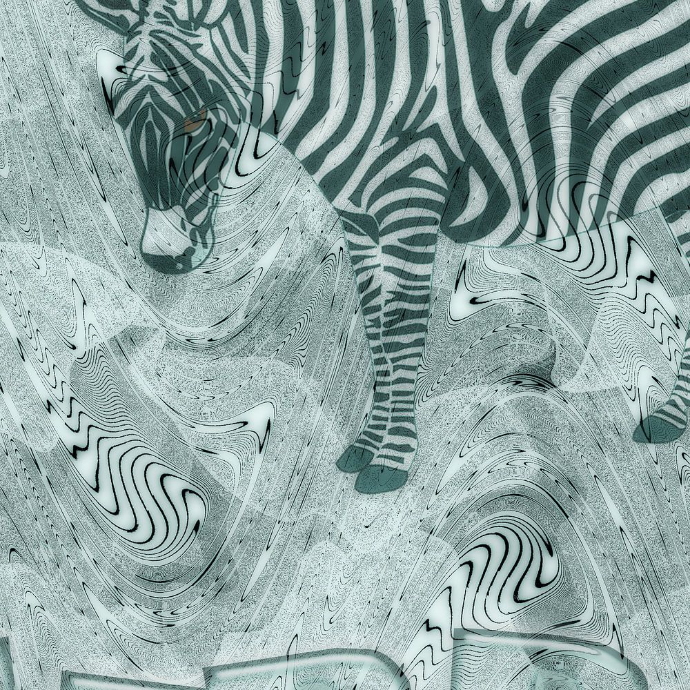Zebras, ZEBRA , Illustration, Collage, Tiere, Typografie, trendy, grafik, fantasie. schwarz-weiß. blugrün, Kinderzimmer. digitalart. Afrika. Trendfarbe. schwarzweiß. wildtiere . Illustration. abstrakt, Zebrastreifen, Zebramuster, fraktale Linien, Pattern, Zebrapattern, Streifenmuster, einfarbig, monochrome