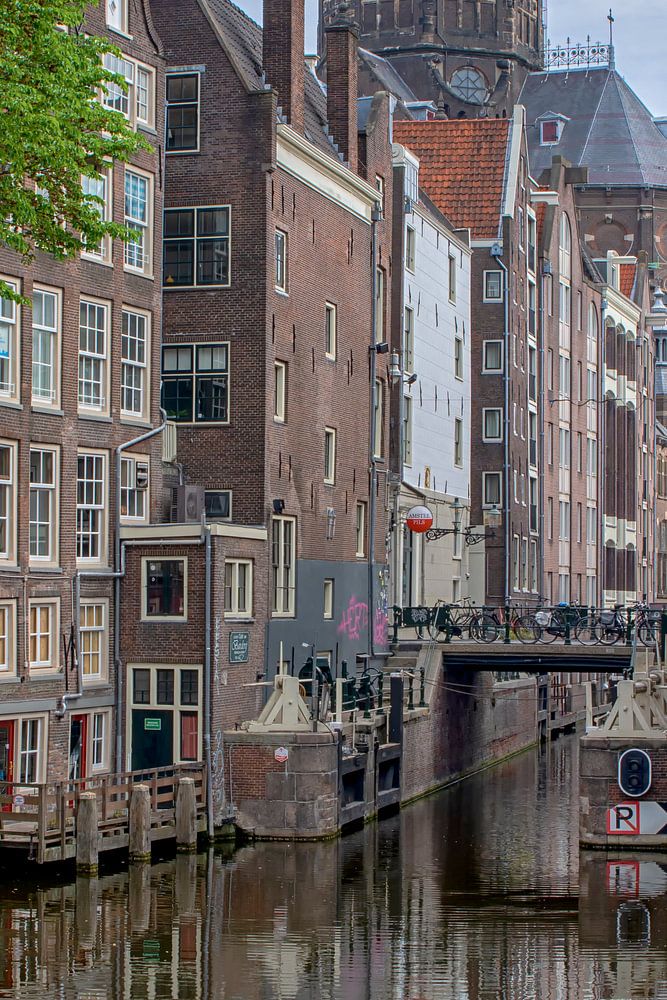Dieses Werk zeigt die Rückseite des Zeedijk in Amsterdam. Die Aufnahme wurde vom Armbrug aus gemacht. Über dem Wasser ragt die Basilika Sint Nicolaaskerk hoch über alles andere hinaus.