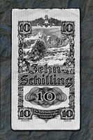Rückseite einer ungültigen Zehn Schilling Banknote aus dem Jahr 1945 aus Österreich