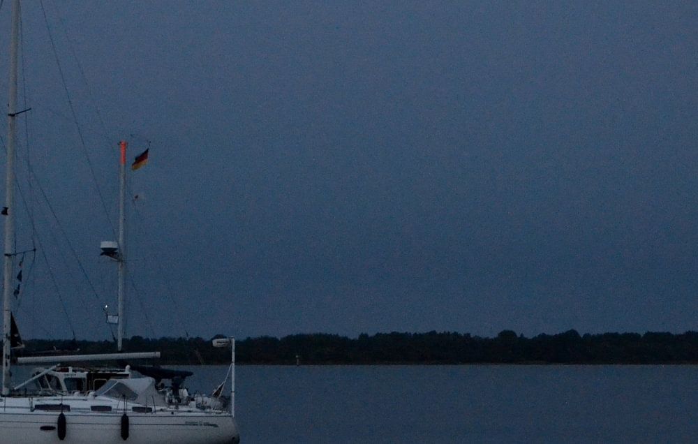 Zeilbootje op het Veerse Meer met een prachtige maan. Stilleven op het water.