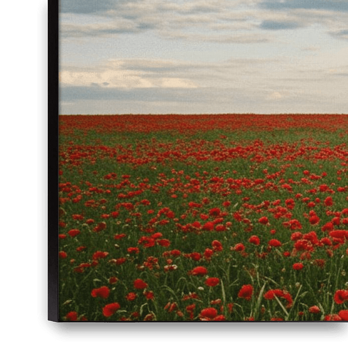Tauchen Sie ein in die lebendige Schönheit einer endlosen Mohnblumenwiese, die sich bis zum Horizont erstreckt. Das intensive Rot der Blüten erzeugt einen dynamischen Kontrast zum sanft getönten Himmel voller wolkenverhangener Tiefe. Dieses Wandbild fängt die ungezähmte Kraft der Natur ein und verleiht jedem Raum eine frische,…