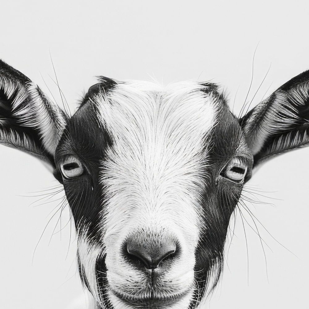 Dieses eindrucksvolle Schwarz-Weiß-Porträt einer Ziege fängt die charakteristische Mimik und die markanten Züge des Tieres perfekt ein. Die feinen Details des Fells und die intensiven Augen verleihen dem Bild eine besondere Tiefe und Präsenz. Ideal für Naturliebhaber und Kunstenthusiasten, bringt dieses Kunstwerk eine charmante und rustikale Note in Ihre Wohn- oder Arbeitsräume.