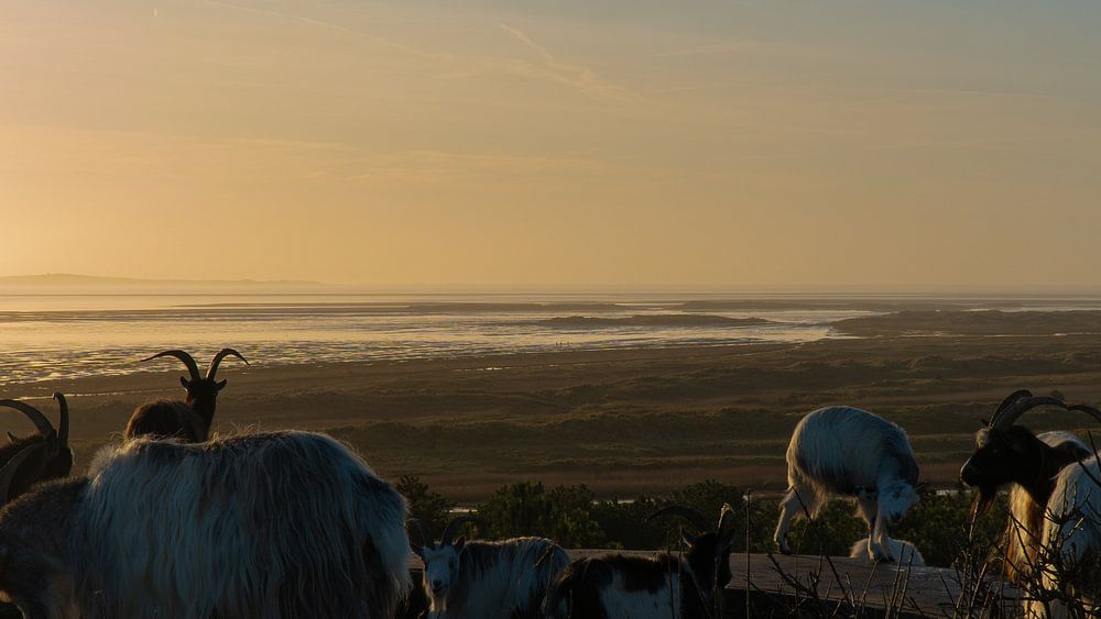 Diese Ziegen leben auf Terschelling und genossen die untergehende Sonne.
