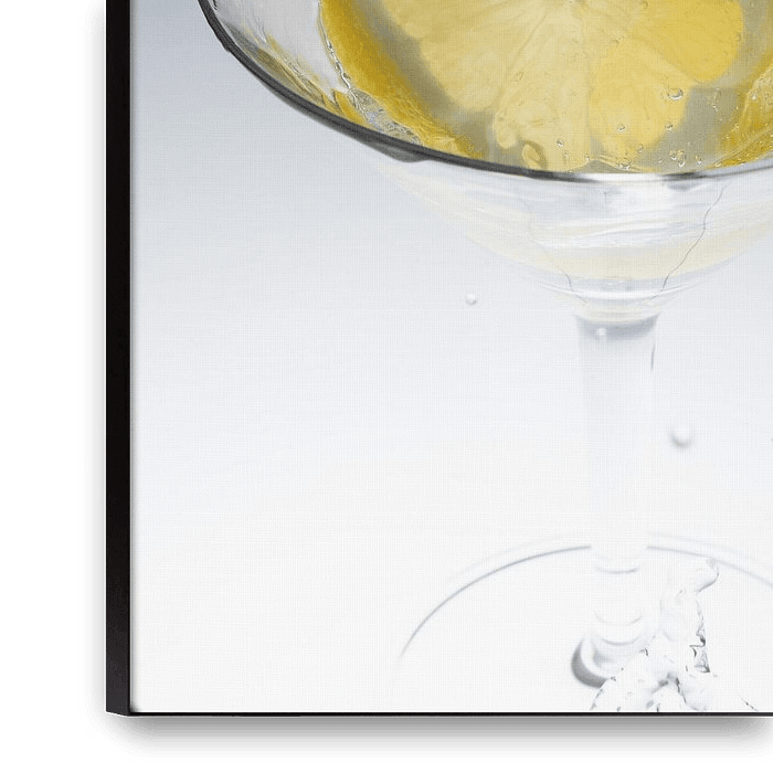 Bestelle das Foto Zitrone fällt in ein Glas mit Wasser 1 von Marc Heiligenstein als Reproduktion auf Leinwand, Alu-Dibond, als Poster, Fototapete oder Acrylglasbild.