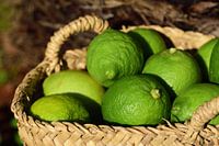 Bestelle das Foto Zitronen im Korb von Ulrike Leone als Reproduktion auf Leinwand, Alu-Dibond, als Poster, Fototapete oder Acrylglasbild.