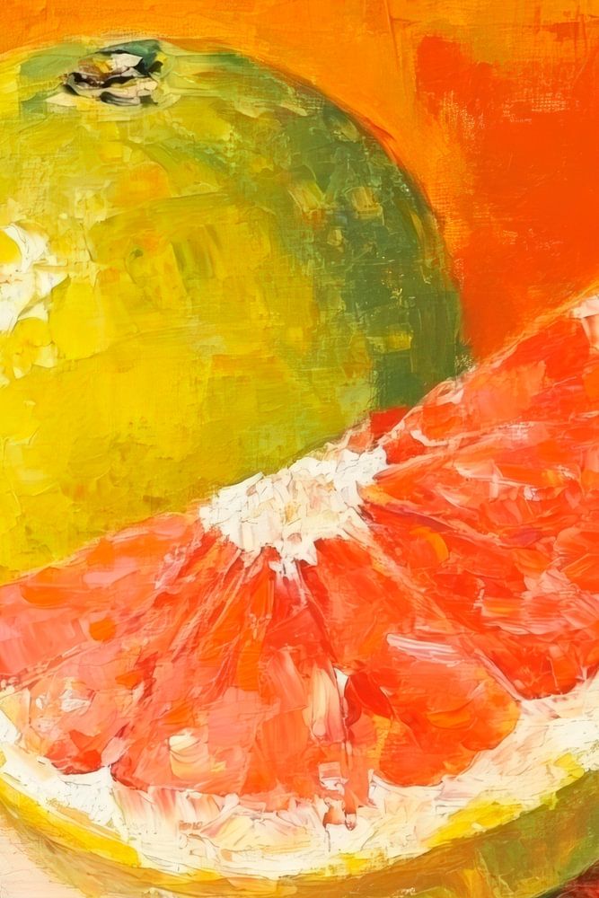 Frische Farben tanzen auf der Leinwand, während eine leuchtende Grapefruit und eine saftige Limette harmonisch nebeneinanderliegen. Die warmen, sonnigen Töne strahlen Lebensfreude aus und verleihen jeder Küche ein einladendes Flair. Dieses Kunstwerk bringt einen Hauch von Frische und Lebensenergie in den Raum, perfekt zum Inspirieren und Genießen.