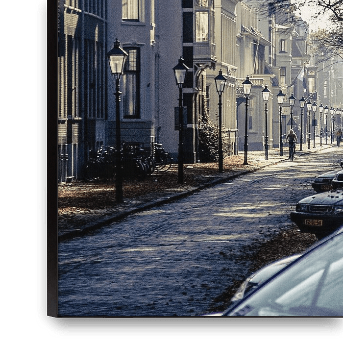 Bestelle das Foto Zonsondergang aan de Utrechtse Maliebaan von Klaas Leussink als Reproduktion auf Leinwand, Alu-Dibond, als Poster, Fototapete oder Acrylglasbild.