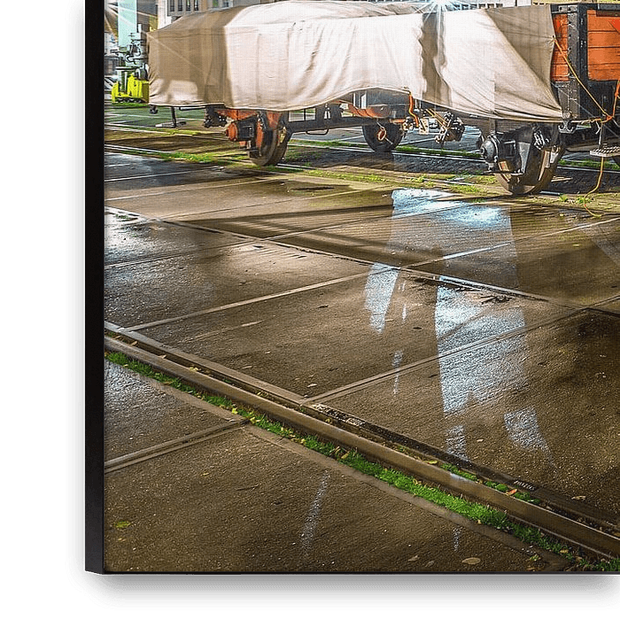 Bestelle dieses Rotterdam-Wandbild Zug im Zentrum von Rotterdam von Gerrit de Groot als Reproduktion auf Leinwand, Alu-Dibond, als Poster, Fototapete oder Acrylglasbild.