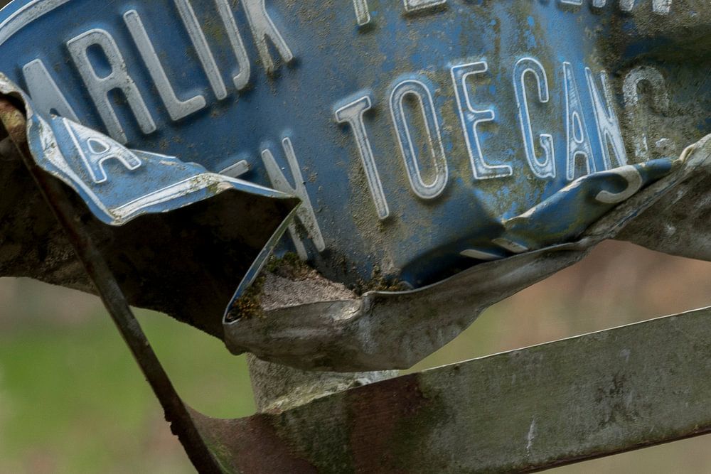 Ein Stück verdrehter Stahl auf einer Stange. Wie gefährlich wird es sein, diesen Bereich zu betreten, wenn dieses Warnzeichen bereits so aussieht. Ich habe keine Ahnung, aber ich traute mich wirklich nicht weiter