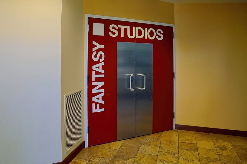 Eingang zu den berühmten Aufnahmestudios (Fantasy Studios) in Berkeley, Kalifornien, USA. Die Fantasy Studios waren ein Musikaufnahmestudio im Zaentz Media Center, das für die Aufnahme von preisgekrönten Alben von Künstlern wie David Bowie, Creedence Clearwater Revival und vielen anderen bekannt ist. Ursprünglich wurde es 1971 als…