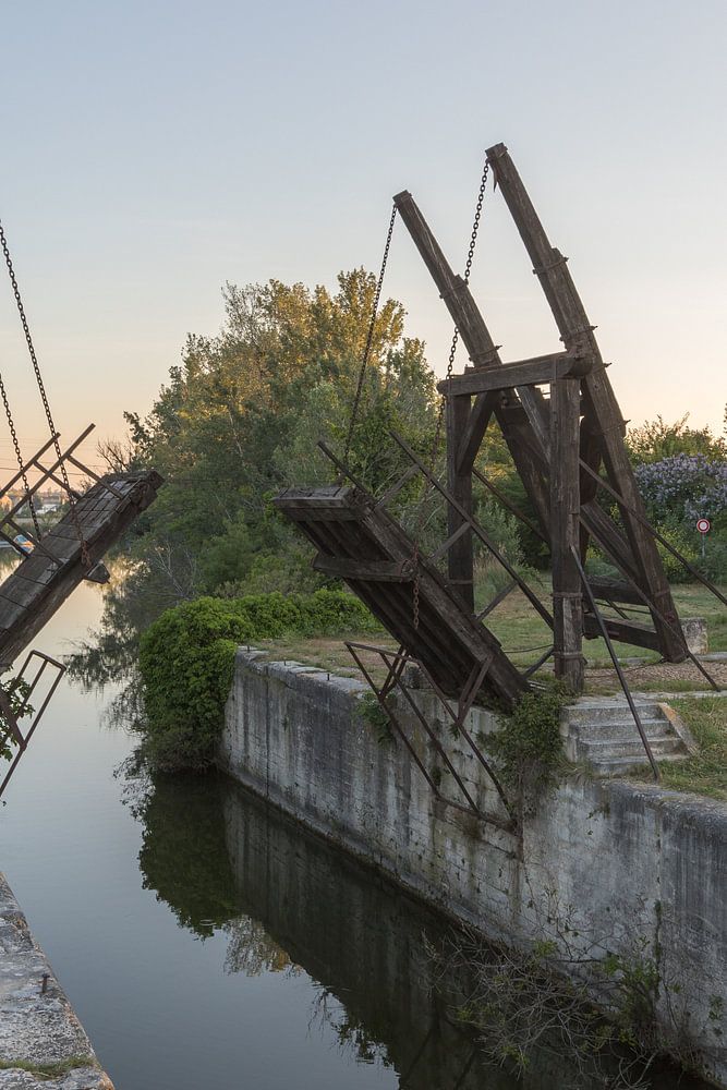 Frühmorgendliche Zugbrücke von Vincent van Gogh in Arles, Provence, Frankreich.