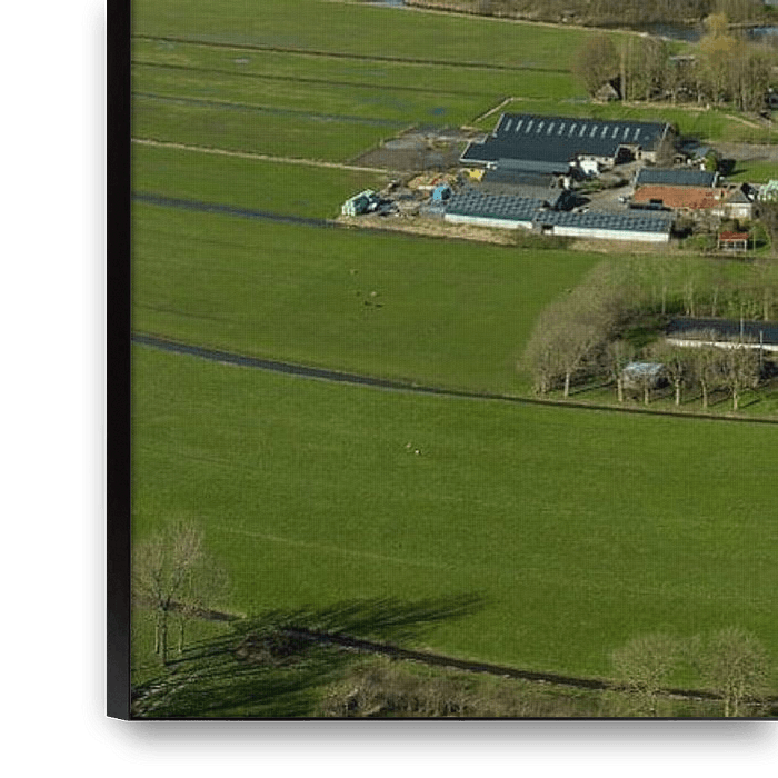 Bestelle dieses Landschafts-Wandbild Zwarte Water Fluss Hochwasser bei Hasselt Drohnenansicht von Sjoerd van der Wal Fotografie als Reproduktion auf Leinwand, Alu-Dibond, als Poster, Fototapete oder Acrylglasbild.