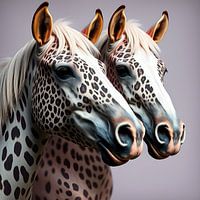 Bestelle das digitale Kunst Bild Zwei Pferde mit Leopardenfell von The Art Kroep als Reproduktion auf Leinwand, Alu-Dibond, als Poster, Fototapete oder Acrylglasbild.
