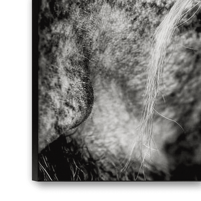 Perfekt für alle, die auf der Suche nach 'emotionalen Schwarz-Weiß-Porträts' oder 'Wanddekoration mit kontrastierenden Gesichtern' sind. Die raue Textur von Haut und Augen lenkt den Blick auf Themen wie Vergänglichkeit, Weisheit und Jugend. Ideal für 'moderne Porträtdrucke mit Emotionen' oder 'schwarz-weiße Kunst für das Wohnzimmer'.