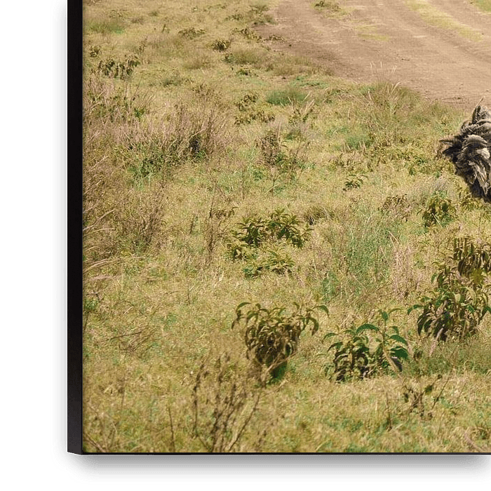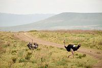 Bestelle dieses Landschafts-Wandbild Zwei Strauße im Ngorongoro-Krater von Dante van Rijn als Reproduktion auf Leinwand, Alu-Dibond, als Poster, Fototapete oder Acrylglasbild.