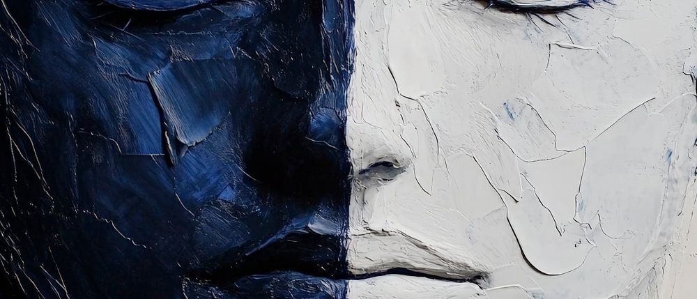 Ein majestätisches Spiel von Licht und Schatten enthüllt das innere Gleichgewicht der menschlichen Seele. Die eine Hälfte strahlt in dunklen Tönen, während die andere in einem hellen, fast etherealem Weiß erblüht. Diese harmonische Dualität macht das Werk zur perfekten Ergänzung für ein Wohnzimmer, wo Ruhe und Reflexion zur Entfaltung kommen.