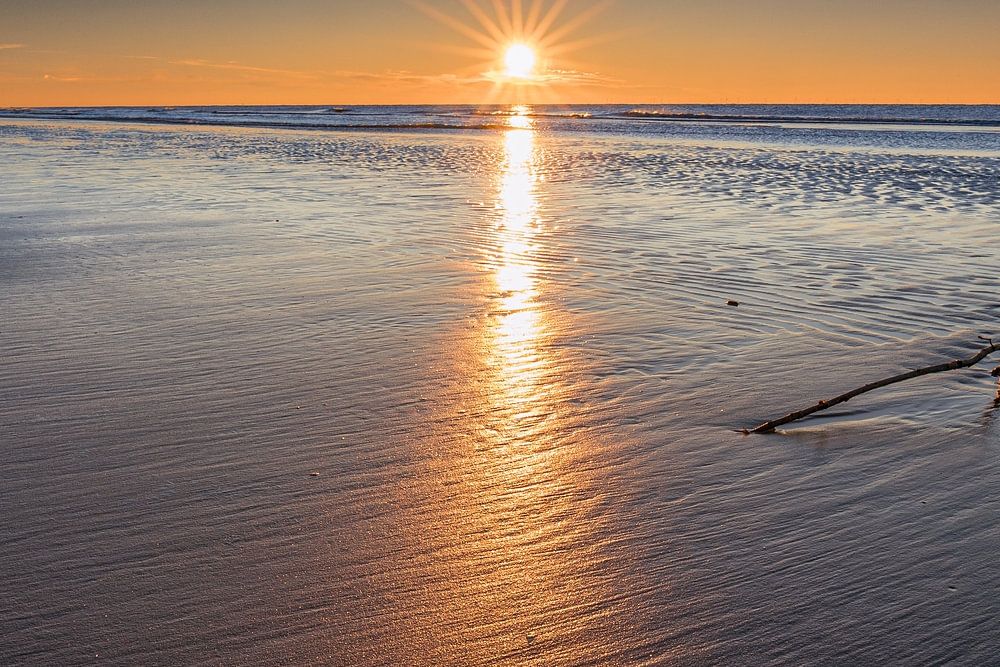 Der Mittwoch, 10. Dezember, brachte einen unerwartet schönen Sonnenuntergang. Am vorläufig letzten Tag des Frostes hatte die Ebbe und Flut schöne Sandstrukturen geschaffen, die ich dann als Vordergrund für meine Fotos nutze's. Am Kerf gibt es mehrere Reihen von alten Wellenbrechern, die man bei Sonnenuntergang dankbar als Fotomotiv nutzen kann.