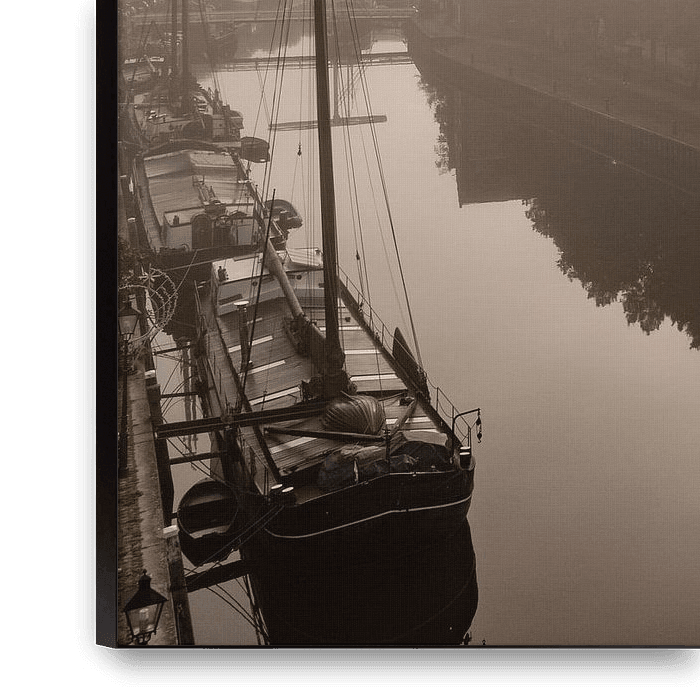 Bestelle das Foto Zwolle Thorbeckegracht an einem nebligen Herbstmorgen von Sjoerd van der Wal Fotografie als Reproduktion auf Leinwand, Alu-Dibond, als Poster, Fototapete oder Acrylglasbild.