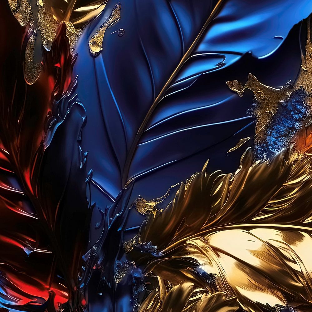 Abstrakt in Gold, Rot und Blau. Dieses Bild wurde mit künstlicher Intelligenz (KI) erstellt.