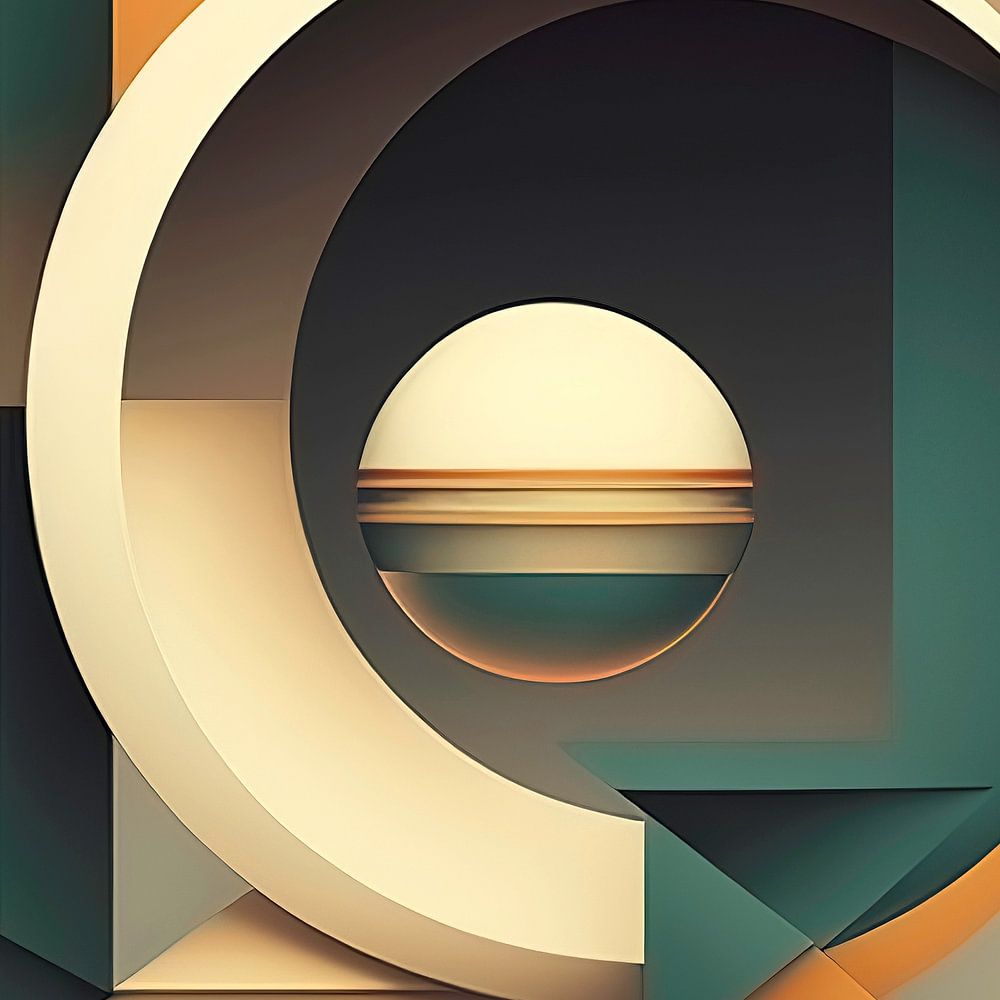 Abstrakte geometrische Retro-Kunst: Dieses Bild wurde mit künstlicher Intelligenz (KI) erstellt.