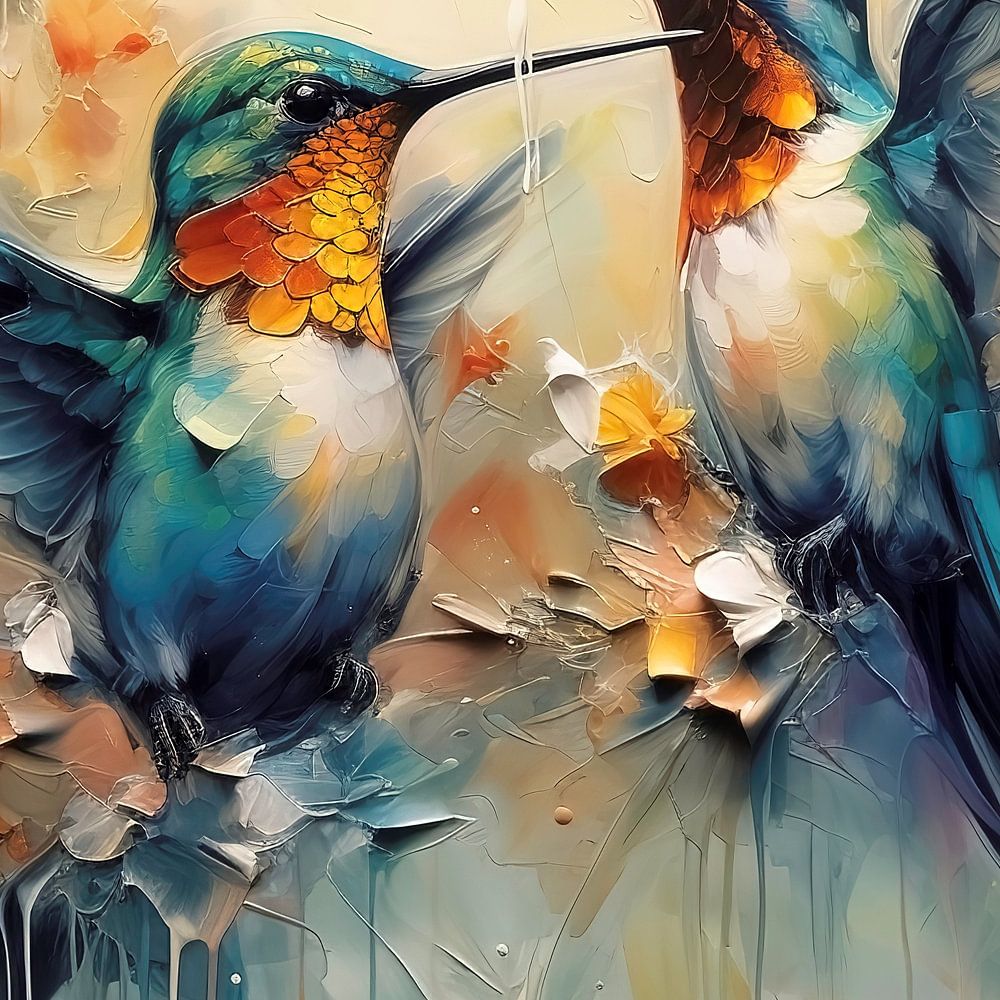 Anstatt sich auf realistische Bilder zu beschränken, spielt der Künstler mit Komposition und Form. Sie können die Vögel fragmentieren, verzerren oder überlagern, um den Betrachter herauszufordern, eine neue Sichtweise zu entdecken. Das Ergebnis ist eine Verschmelzung von Formen und Linien, die eine poetische und anregende Darstellung der Vögel schafft.