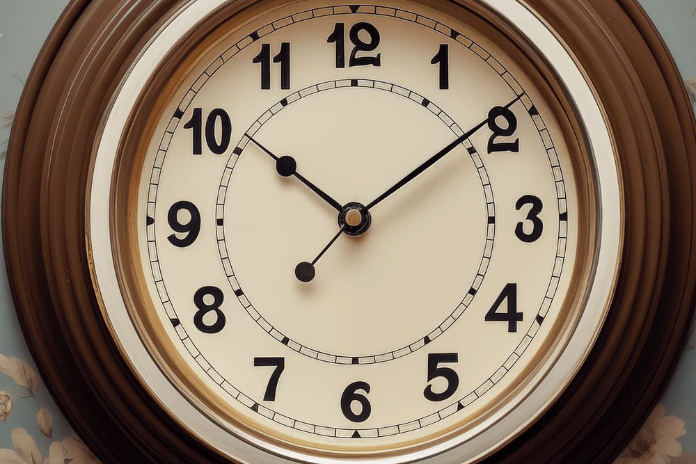 alte Vintage-Wanduhr an der Wand mit Retro-Tapete