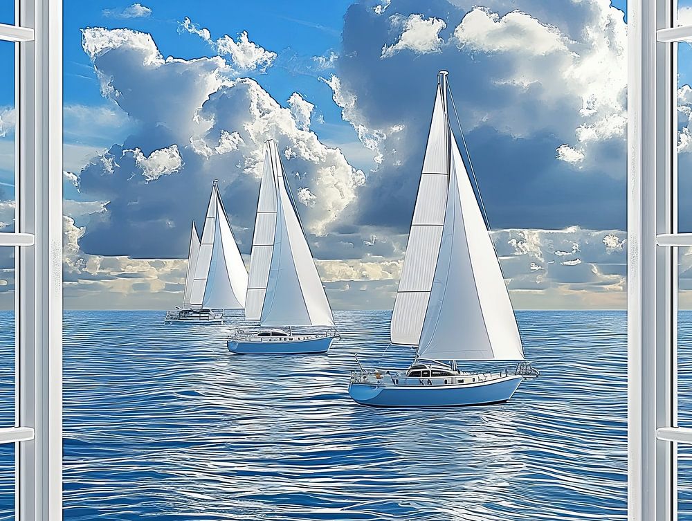 Blick aus dem Fenster auf das Wasser mit Segelbooten