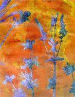 Bestelle dieses Blumen-Wandbild blau oranges Graskonzert von Claudia Gründler als Reproduktion auf Leinwand, Alu-Dibond, als Poster, Fototapete oder Acrylglasbild.