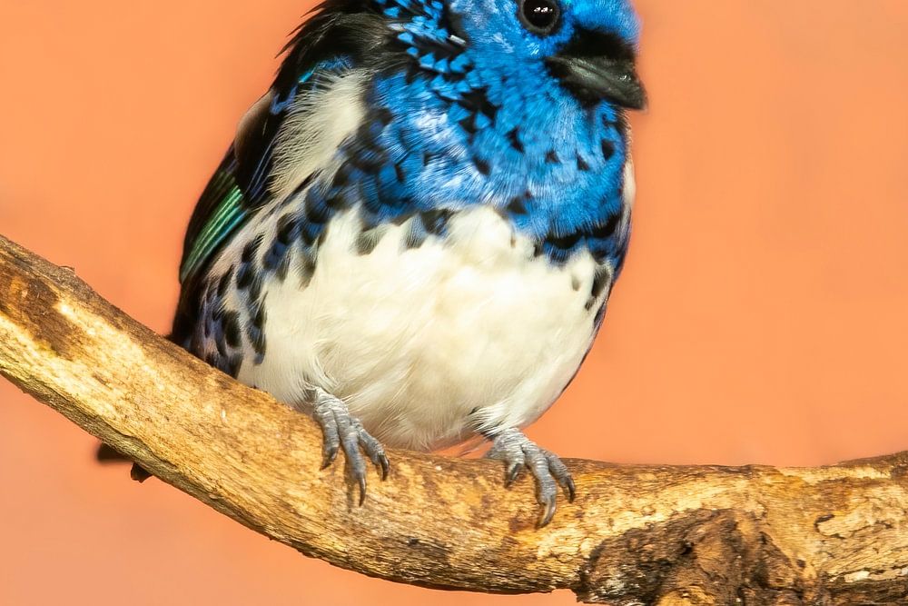 blauer Türkistangare Vogel sitzt auf einem Ast